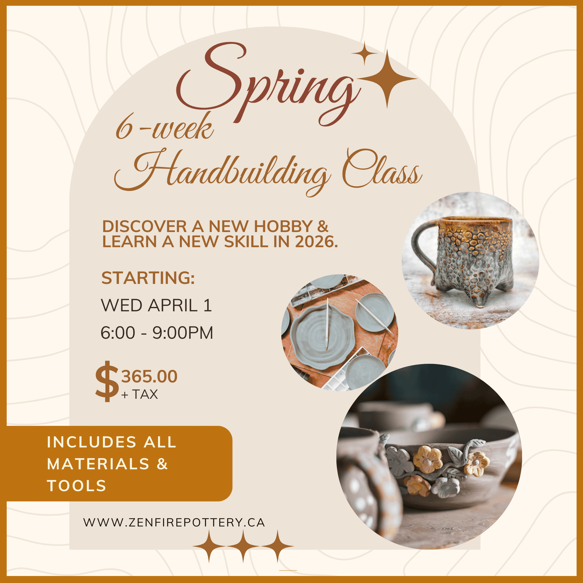 In this 6-week handbuilding class participants will explore clay using rolled out slabs and templates. Students will be provided new projects each week, along with live demonstrations and one to one support to complete the following project examples: leaf bowls/platters, mugs, vases, appetizer sets, and more!